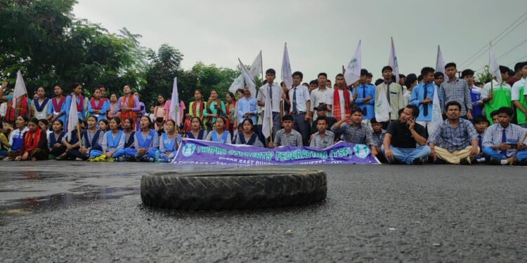 ত্রিপরা স্টুডেন্ট ফেডারেশনের ডাকে বার ঘন্টা এিপুরা বন্ধের জেরে ব্যাপক দুর্ভোগ পোহাতে হয়েছে আগরতলা সাব্রুম রুটে যাতায়াতকারীদের।সোমবার সকালে বিশ্রামগঞ্জ থানাধীন দেওয়ান বাজারে আগরতলা উদয়পুর সড়ক অবরোধ করে টিএসএফ সমর্থকরা।অবরোধের নেতৃত্বে ছিলেন টিএসএফ সেন্ট্রাল কমিটির ভাইস প্রেসিডেন্ট জন দেববর্মা, টিএসএফ সদর সাউথ ডিভিশনাল সেক্রেটারি তানিয়া দেববর্মা,ভাইস প্রেসিডেন্ট অমিত দেববর্মা সহ অন্যান্যরা।অন্যদিকে বিশ্রামগঞ্জ থানাধীন তক্সাপাড়া এলাকাতেও পথ অবরোধ করেছে টিএসএফ সমর্থকরা।খবর পেয়ে ঘটনাস্থলে ছুটে সিপাহী জেলার দায়িত্বপ্রাপ্ত পুলিশ সুপার আইপিএস কিরণ কুমার কে সহ বিশাল পুলিশ ও কেন্দ্রীয় বাহিনীর জওয়ানরা।তাদের অবরোধের হাত থেকে রেহাই পাননি কোর্টের জাজও।ফলে সকাল থেকে বিকেল পর্যন্ত সড়ক পথে আগরতলা থেকে সাব্রুম উভয়দিকে যাতায়াতকারীদের ব্যাপক দুর্ভোগ পোহাতে হয়েছে।
